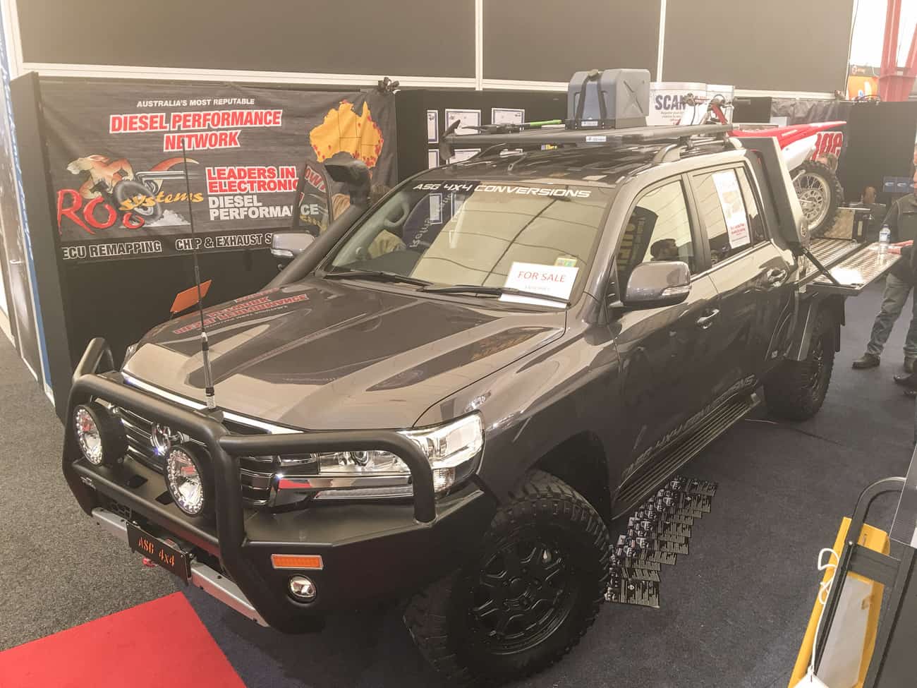 ASG Conversions completed a tray-back 200 Series with an extended chassis for the show. The 200 Series is the strongest 4WD Toyota makes (yes, more HD than the 70 Series), so a quad-cab tray bed is very interesting indeed! They call it the Toowoomba, because Aussies love inexplicable product names with extra vowels (grin). ASG Link