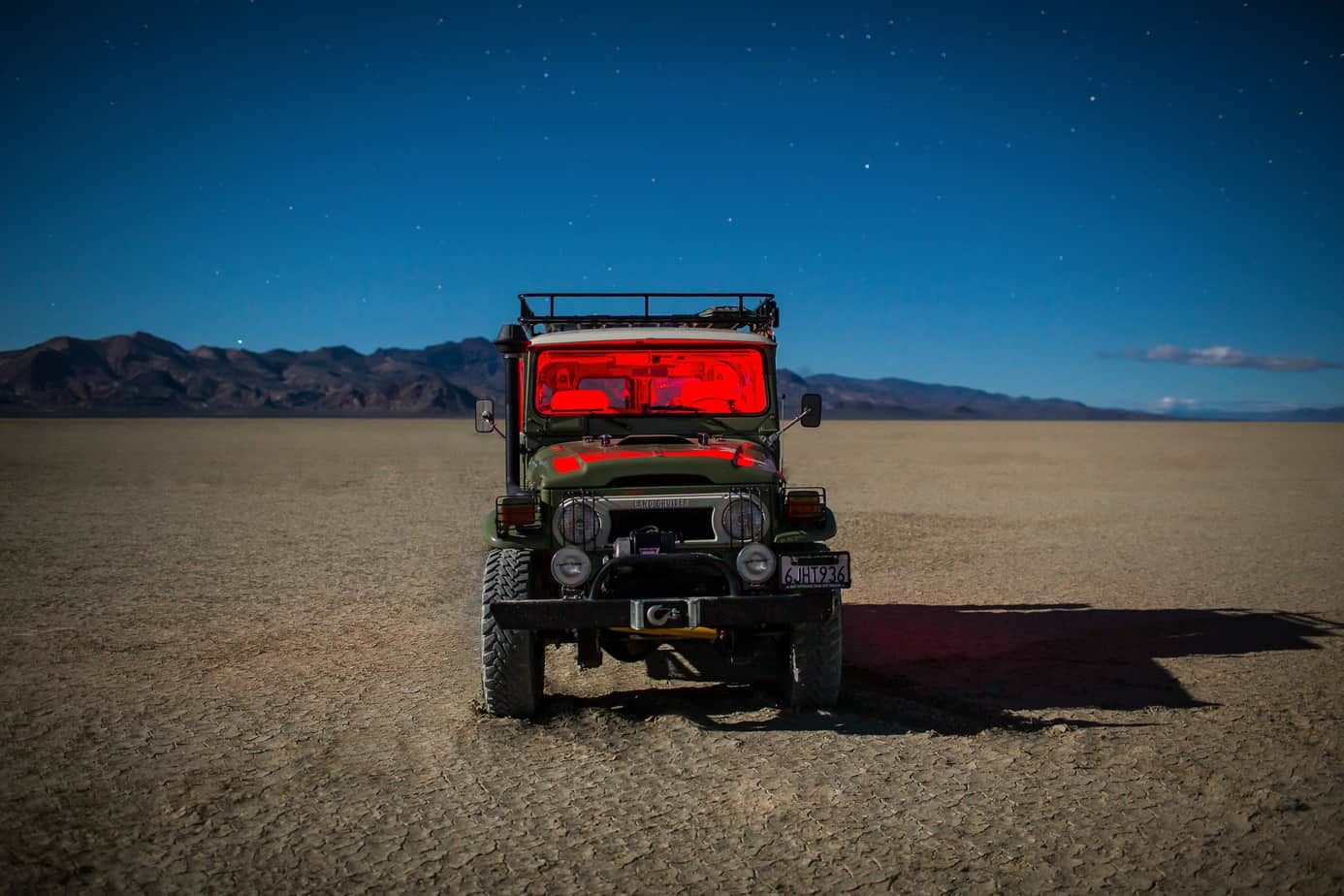 Just as we had settled in, the moon came out, and we decided to take the FJ out for a night drive. The high desert by moonlight can be so bright, you don’t even need a headlamp. It’s a surreal experience. The HJ was committed to the roof-top tent setup for the night, but Patrick’s FJ40 was free and ready to go. At the turn of the key, its small diesel rumbled to life, and we made our way out into the desert.