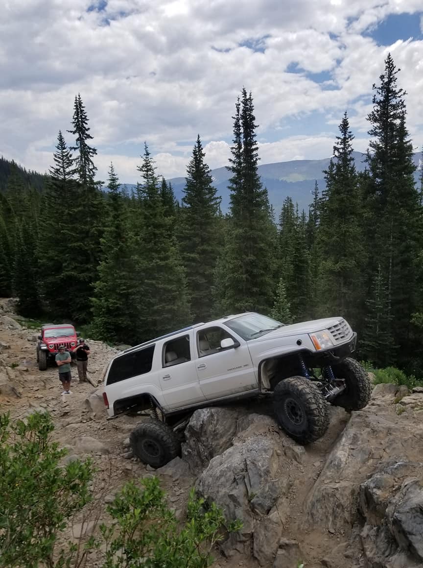 The monster Cadillac you see before you was built by enthusiast Dan Dietz off a sarcastic joke from his father. After buying the wrecked Escalade for parts, his father jousted why not put your Blazer axles under it. Dan, however, thought it was a pretty good idea, and so began the build. It started with super cheap leaf springs and Chevy 1-tons, but when he found a set of brand new used King coilovers still in the box, it quickly “got out of hand.”