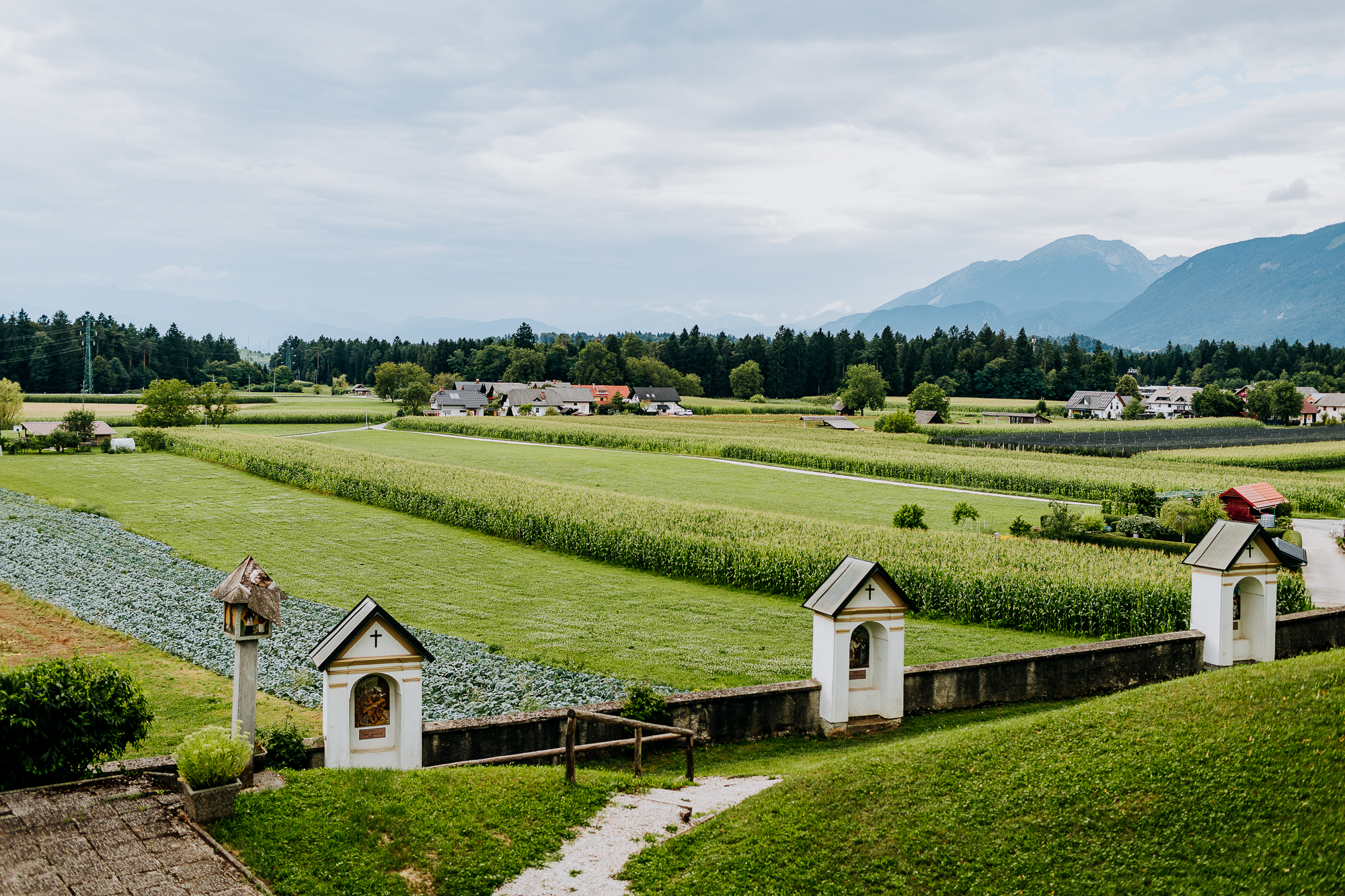 Slovenian farm stays typically take you away from tourist hot spots and into the countryside via quiet, single-track roads highlighted by churches, small settlements, blackberry shrubs, and beech trees. Most locations can be found on the Park4Night app by clicking the “On the Farm” filter. Overall, these parkups typically offer a better value, are more interesting, and provide a glimpse into local Slovenian life—much more so than your typical lay-by.