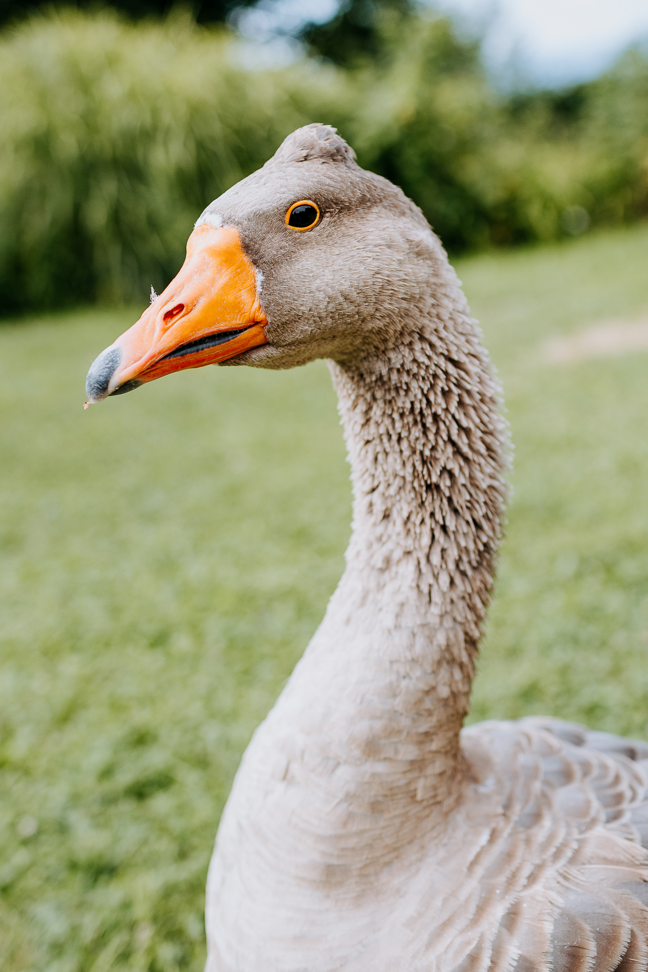 Freshly laundered, we set off the next morning for the countryside. Waving rows of corn and rolled bales of hay made up much of the landscape, which makes sense as 32 percent of Slovenia is covered by agricultural land. I was envious of the fig trees growing so easily in Slovenian backyards—I can’t say the same for their roaring unsuccess in my home province of British Columbia. Rhododendron and ivy made way for local orchids and chicory, a gorgeous segue to our next destination: the Fairy Tale Farm Sanctuary.
