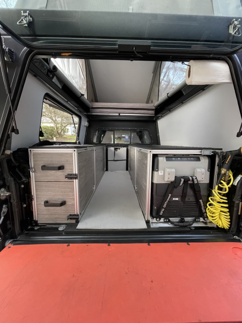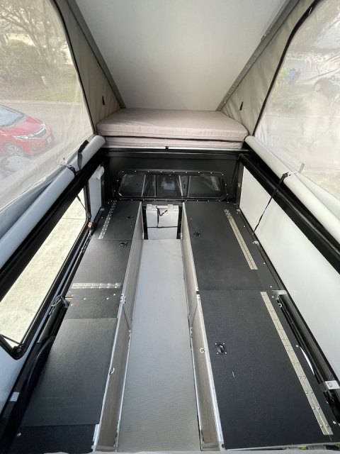 - Vagabond Drifter camper with Goose Gear bed plate and custom cabinets/drawers