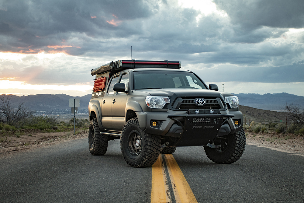 Crafted by Total Chaos’ team of professionals, “Rusty,” the 2nd-Gen Tacoma, is outfitted with the company’s signature mid-travel front suspension system, including Expedition Series lower control arms and custom Deaver Stage Three Expedition leaf springs in the rear. Rusty is also topped with a lightweight and highly sought-after Go Fast Camper. Another perk: the new owner of this build will rock a custom Total Chaos bumper, which is not generally available to the general public as the TC team builds them exclusively for internal project vehicles.