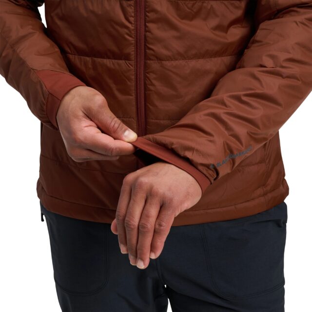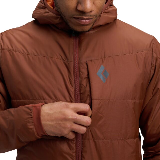 The Black Diamond Men’s Solution hoody is designed as a versatile mid-layer suited to various outdoor activities. It features 60-gram PrimaLoft Gold Eco synthetic insulation, ensuring reliable warmth even when damp. Constructed from recycled materials, its 20-denier ripstop nylon shell has a PFAS-free, durable water-repellent finish to offer wind and light rain resistance. It weighs approximately 360 grams and is highly packable, compressing neatly into its left-hand pocket. The hoody includes practical features such as a helmet-compatible hood, zippered chest, hand pockets, stretch knit cuffs, and an adjustable hem, making it ideal for bikers, hikers, climbers, or the average joe.
