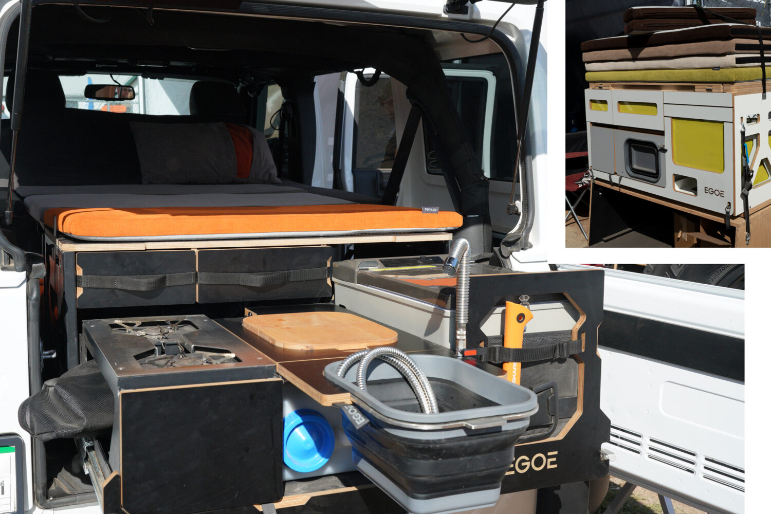 Based in the Czech Republic, Egoe Nest is a design studio that focuses on installations in transport infrastructure. Their Nestbox is a self-contained camping system that works with just about any vehicle on the market. It is unique in that it requires no drilling or vehicle modification to be installed. Simply use their lashing system to secure the module to your vehicle’s existing bolts and tie-downs.