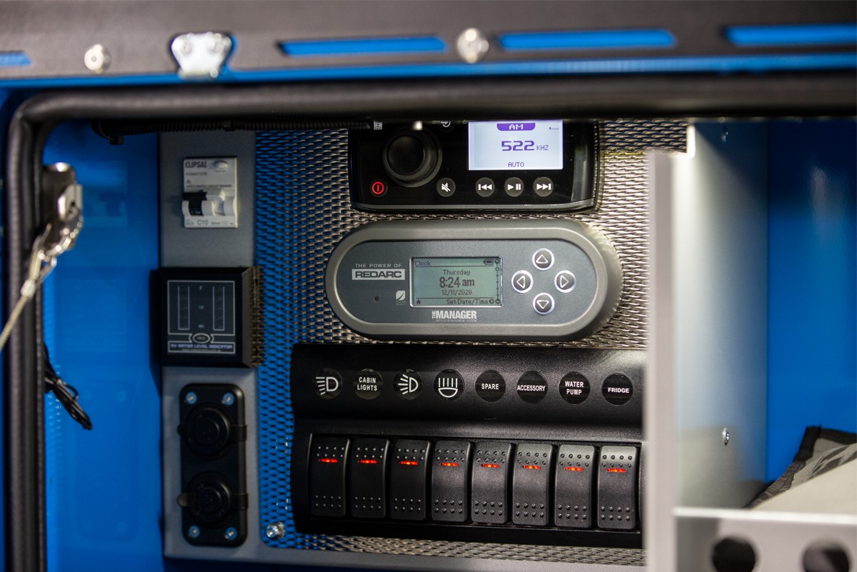 The base camp features a side-accessed slide-out kitchen, complete with a dedicated space for a refrigerator as well as storage space for all of your kitchen essentials. The TH610 can also be optioned with a rooftop tent. Standard features include PCOR 17-inch alloy wheels, MaxTrax mounts, vehicle ramps, DO35 hitch coupling, 12-inch electric brakes, self-leveling airbag suspension, 2×150 amp-hour AGM batteries, RedArc Manager 30, 180-degree awning, LPG hot water heater, and more. Check out the full TH610 specs.