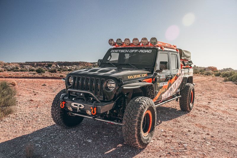 The kicker is that this one-off JT comes with its own matching 1:64 Matchbox die-cast model for exploring the more remote reaches of your living room floor. Built by Doetsch Off-Road in Chandler, Arizona, the 1:1 Gladiator features premium parts and accessories from RealTruck, including a RealTruck Rugged Ridge Roof Top Tent mounted to the RealTruck GoRack, a RealTruck N-Fab TrailSlider Step System, RealTruck Rugged Ridge Jeep Flush Mount Tail Lights and more.