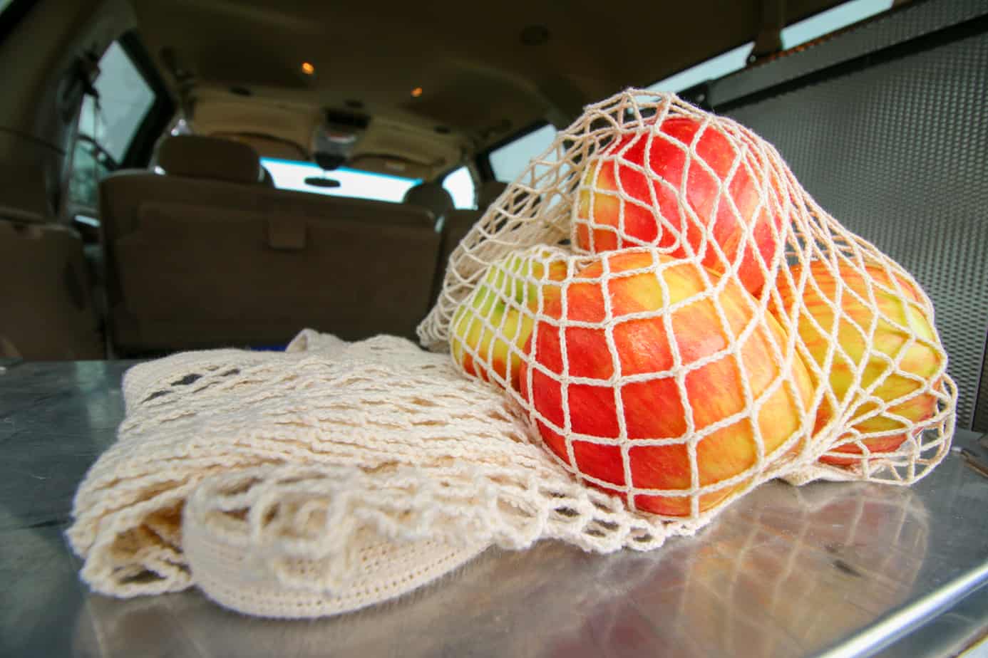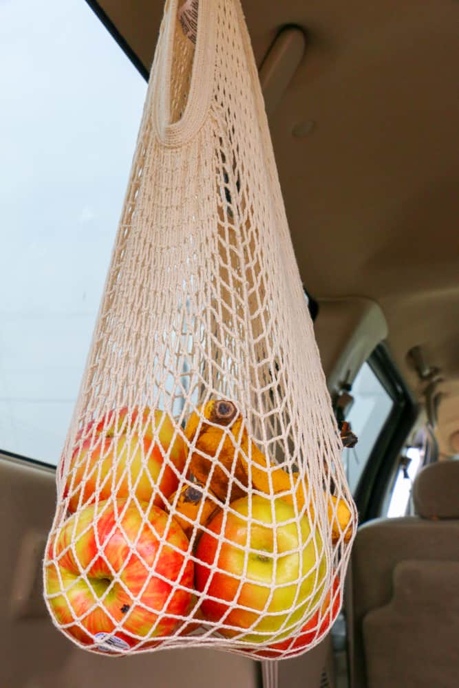 The design is beautiful in its simplicity, just a net of cotton strings with reinforced fabric handles. The more food or supplies you pack into the bag, the more the fabric stretches to accommodate the new shapes and odd sizes. We’ve used them to carry various every day items like food and coffee containers, to four-wheel drive gear like wet tow ropes. They pack down into a tiny ball and are easy to stuff into the back of a seat, so = we keep a few extra on hand in case we need some additional separate storage for unexpected items. For example, some wet jeans after a photo shoot in a marsh.