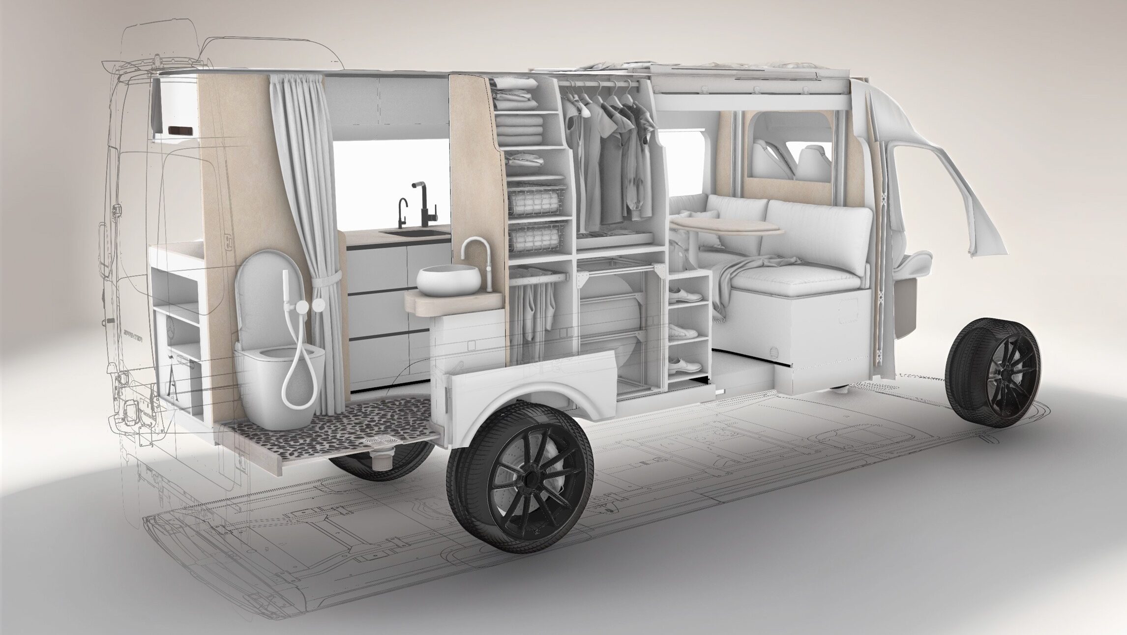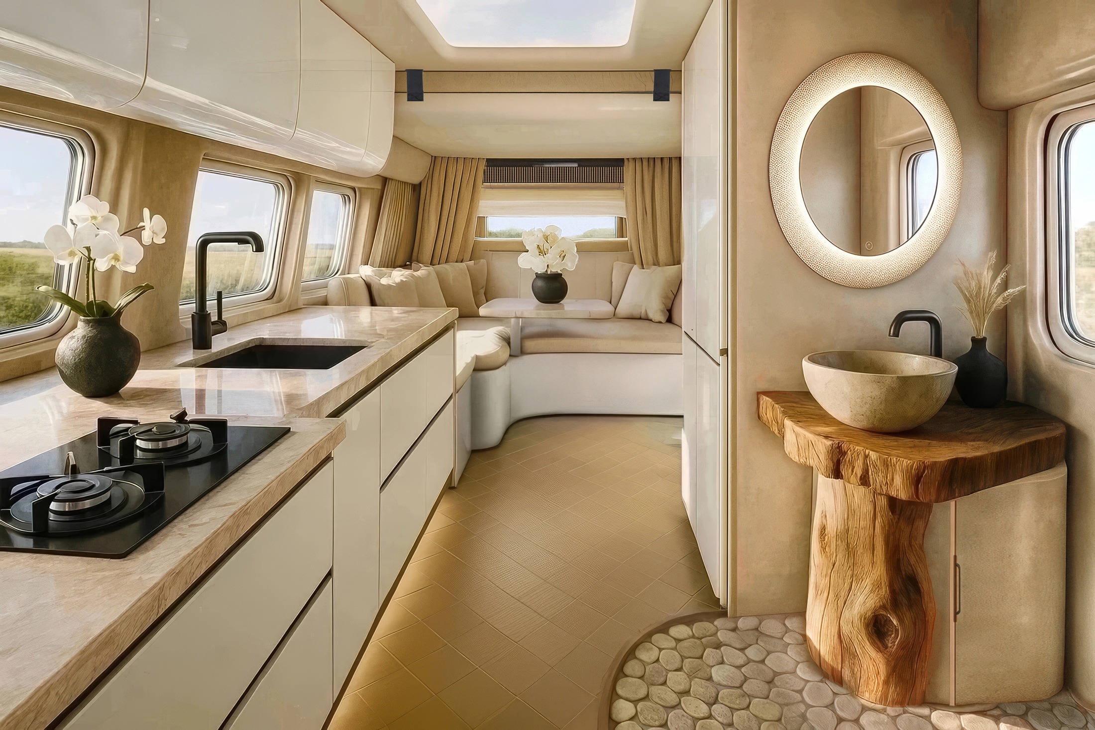 Rather than treating the Ananya as a traditional camper van adapted for travel, Robeta concentrated on creating a compact space that supports how some people genuinely aspire to live, while still dreaming of living a life less ordinary. The Armani-wearing designers drew inspiration from yachts and multi-axle luxury motorhomes, aiming for an interior that feels more like a refined apartment than a vehicle.