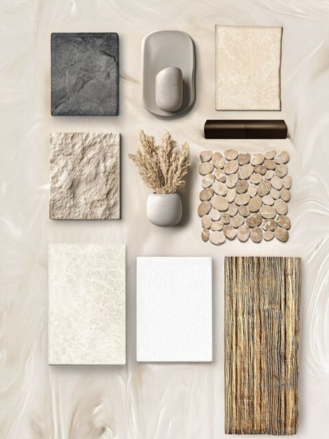 Robeta made a notable departure in its bathroom design by choosing a hybrid hard-and-soft layout rather than traditional enclosed spaces. The shower and toilet area is framed with luxury finishes such as stone (!) flooring and microcement walls, while organic curtains provide privacy. What, no bidet?