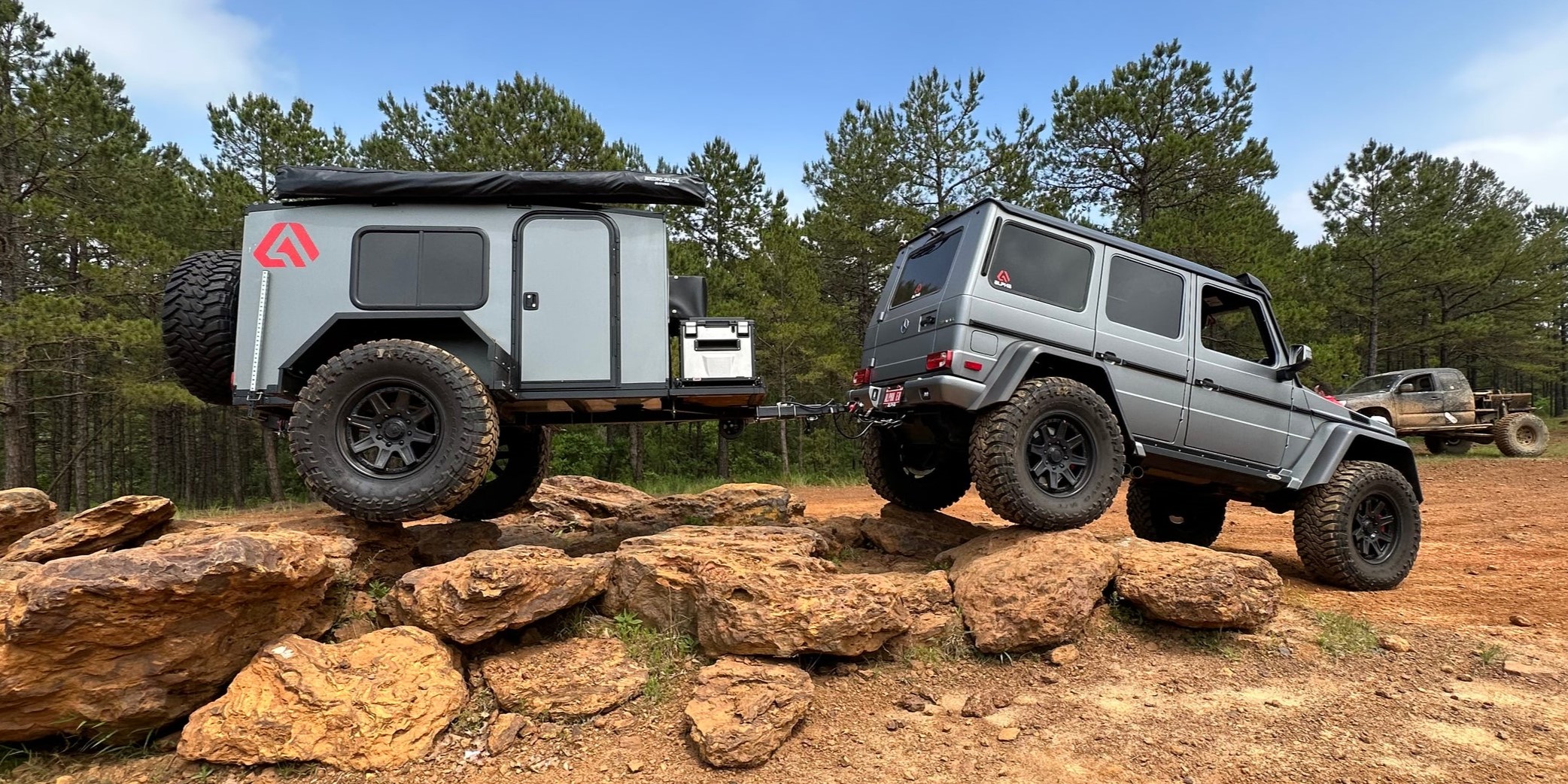 At just 928 pounds for the 4×8 version, the trailer rides on a fully independent Timbren axle-less suspension system with 4 inches of lift (yielding over 20 inches of ground clearance), and rides on all-terrain tires mounted to 17-inch rims. It is equipped with electric brakes, a Max Coupler fully articulating hitch, and a powder-coated front diamond plate for added durability in rugged terrain.
