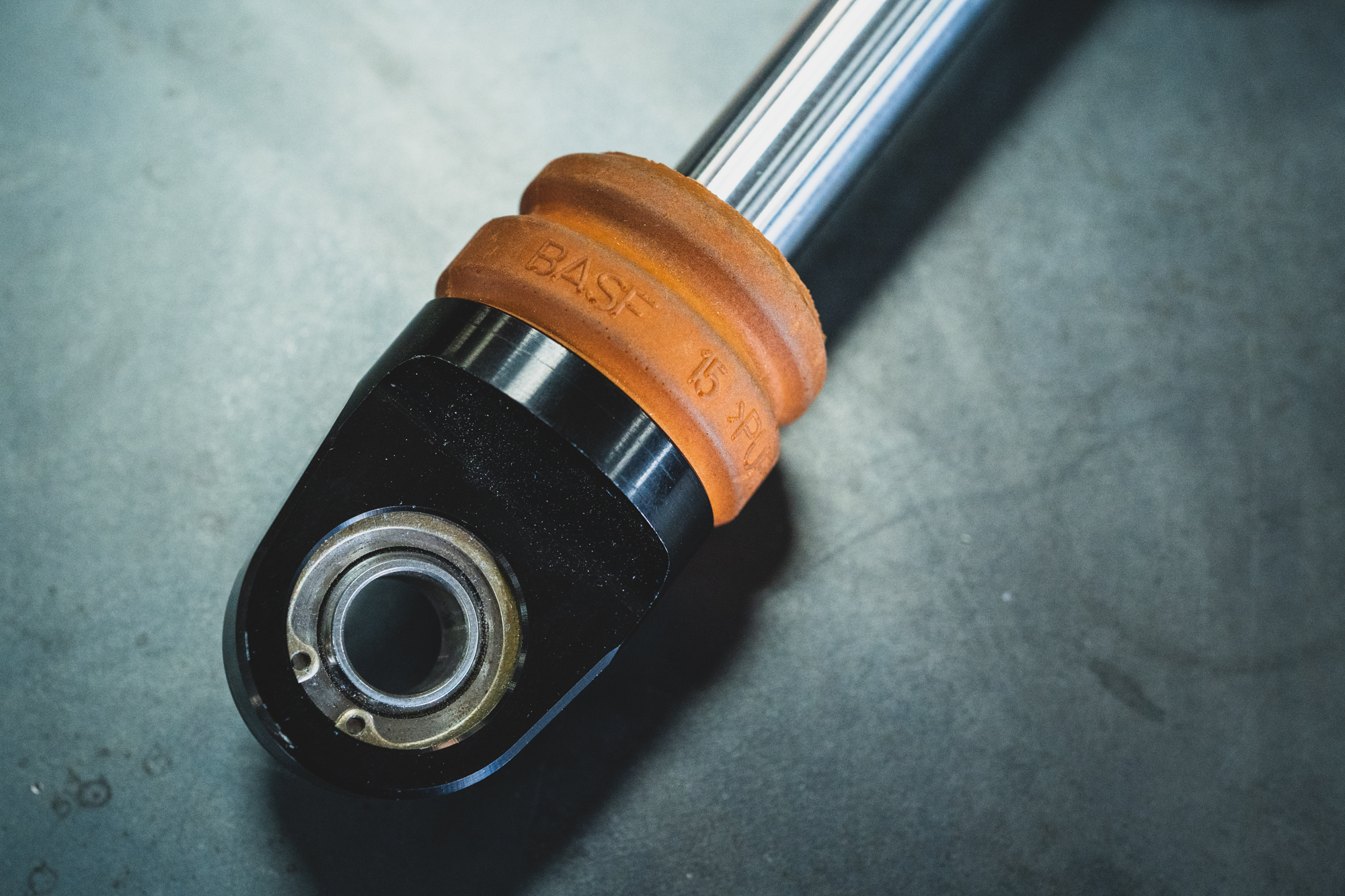 The system installs easily, with additional time required to install the ECU, IMU, and run the harness to each of the dampers. Each shock has an integrated electromechanical valve that controls the rate of fluid flow between the main shock body and the reservoir. This valve has full proportional control, which permits variable control throughout the entire valve range.