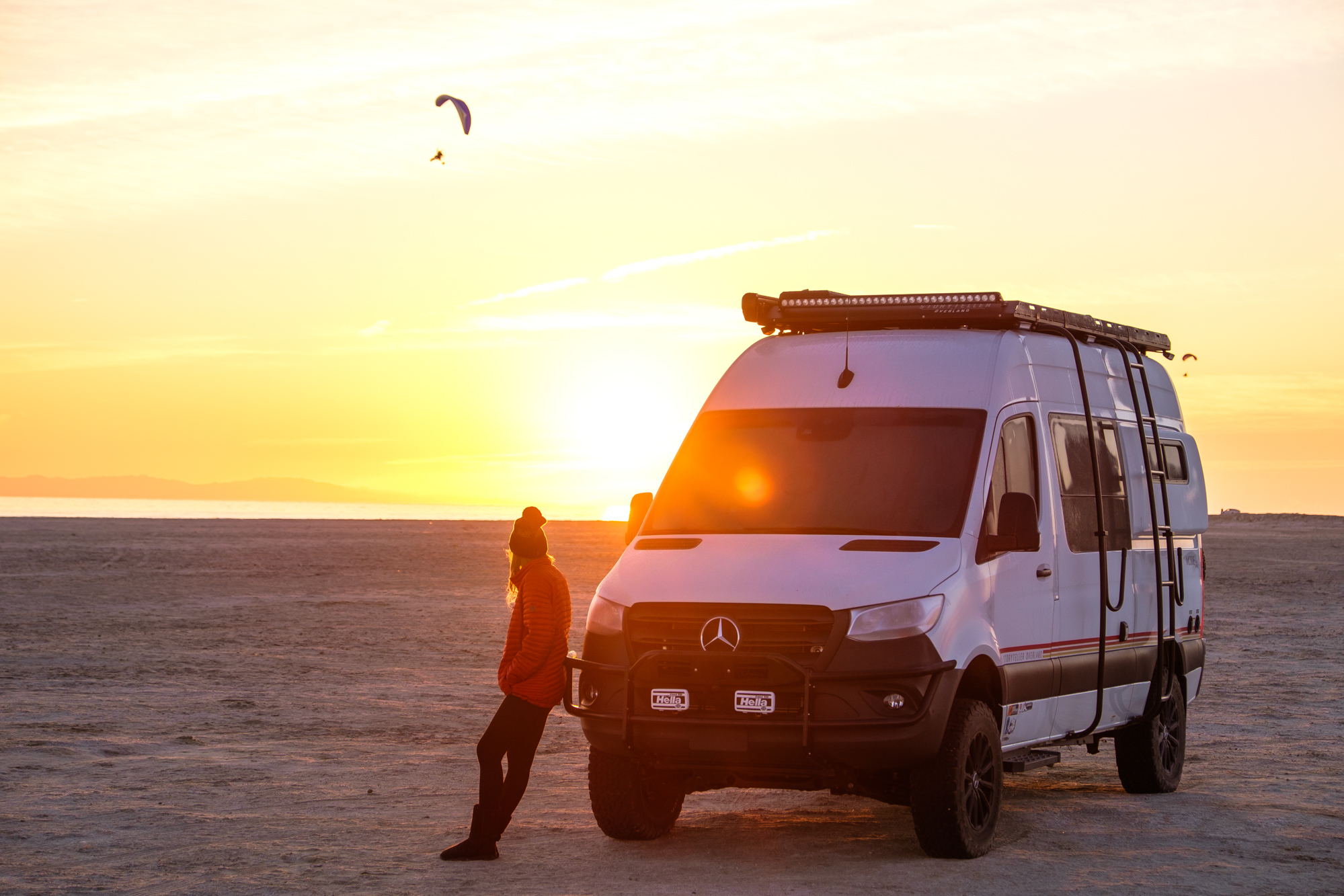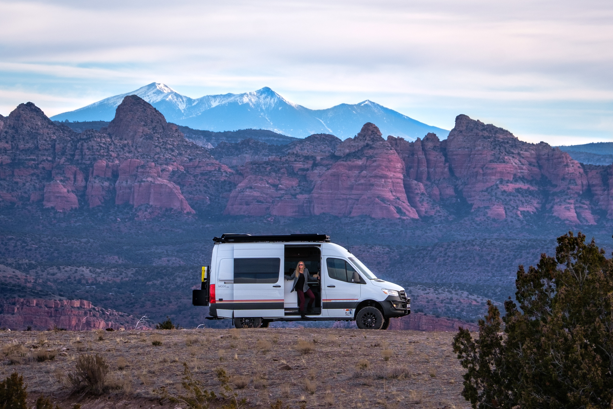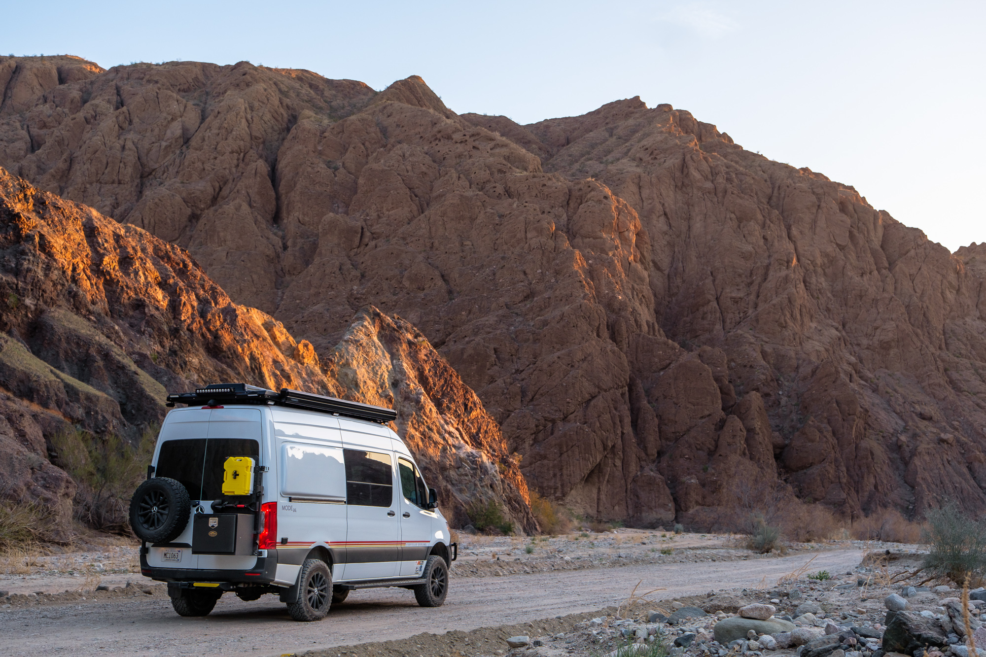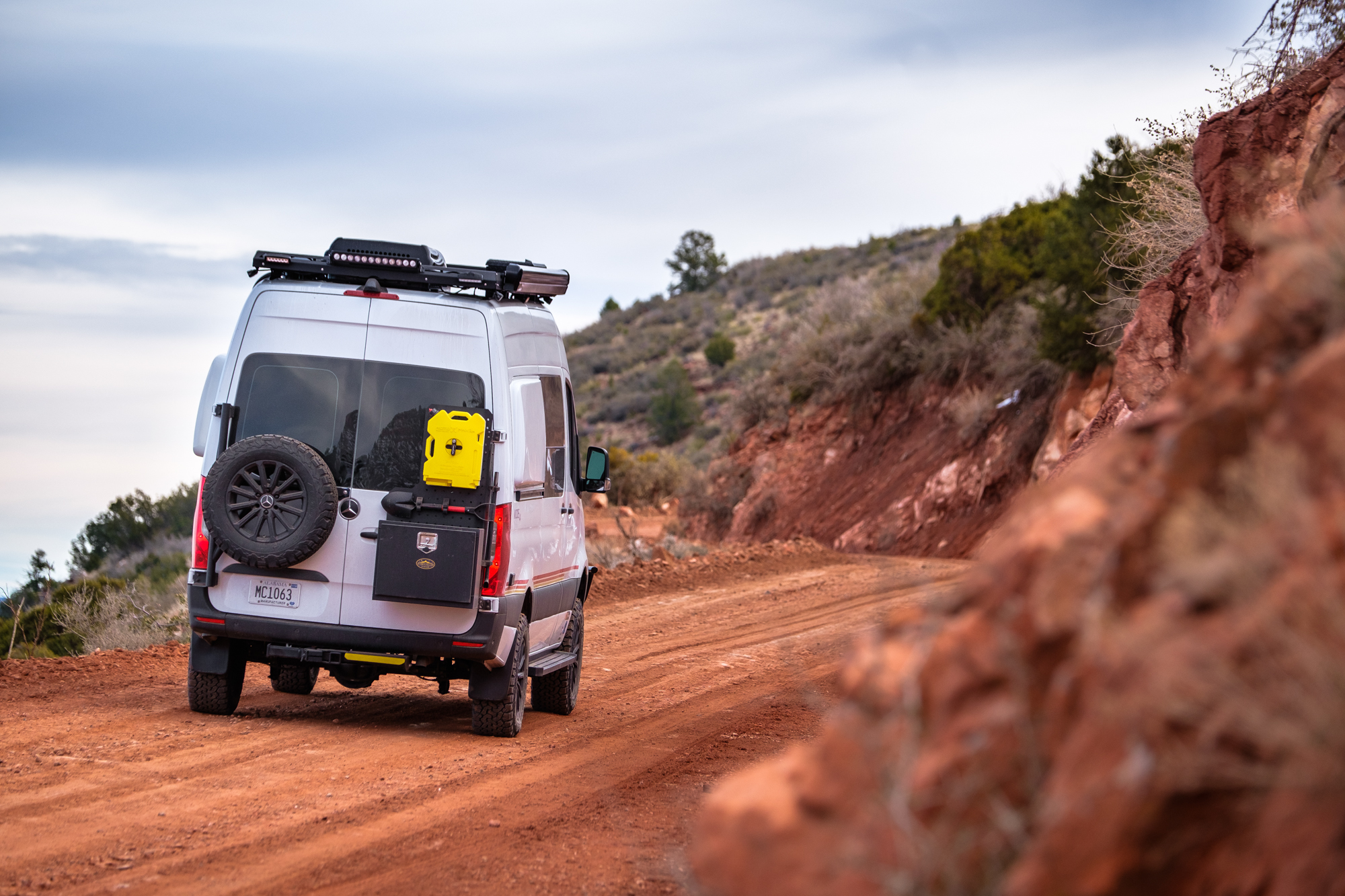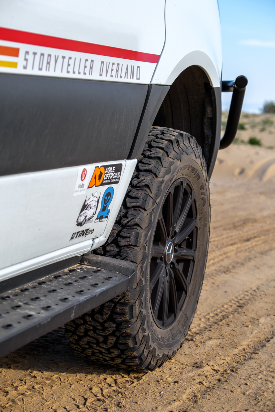 It seems like everyone wants to know about the off-road capability of the Sprinter, so let’s just get that out of the way now. While companies are managing to stuff 35-inch tires under these vans, it’s important to know that they are not meant to be trail rigs. They are travel vehicles, designed with that purpose in mind, not rock crawling. Still, on 99 percent of what we would need to drive on as overlanders, a Mode 4×4 will tackle with ease. That’s because Storyteller understands what’s important on an off-road van. They kept the undercarriage clean and free of low hanging pipes and tanks, the approach and departure angles weren’t ruined with cheesy bolt-on fascias, and they installed proper all-terrain tires instead of thin-walled all-season ones. Thanks to these wise decisions, soft sand, deep snow, mud, and yes, even some technical terrain are all within the capabilities of the Mode 4×4.