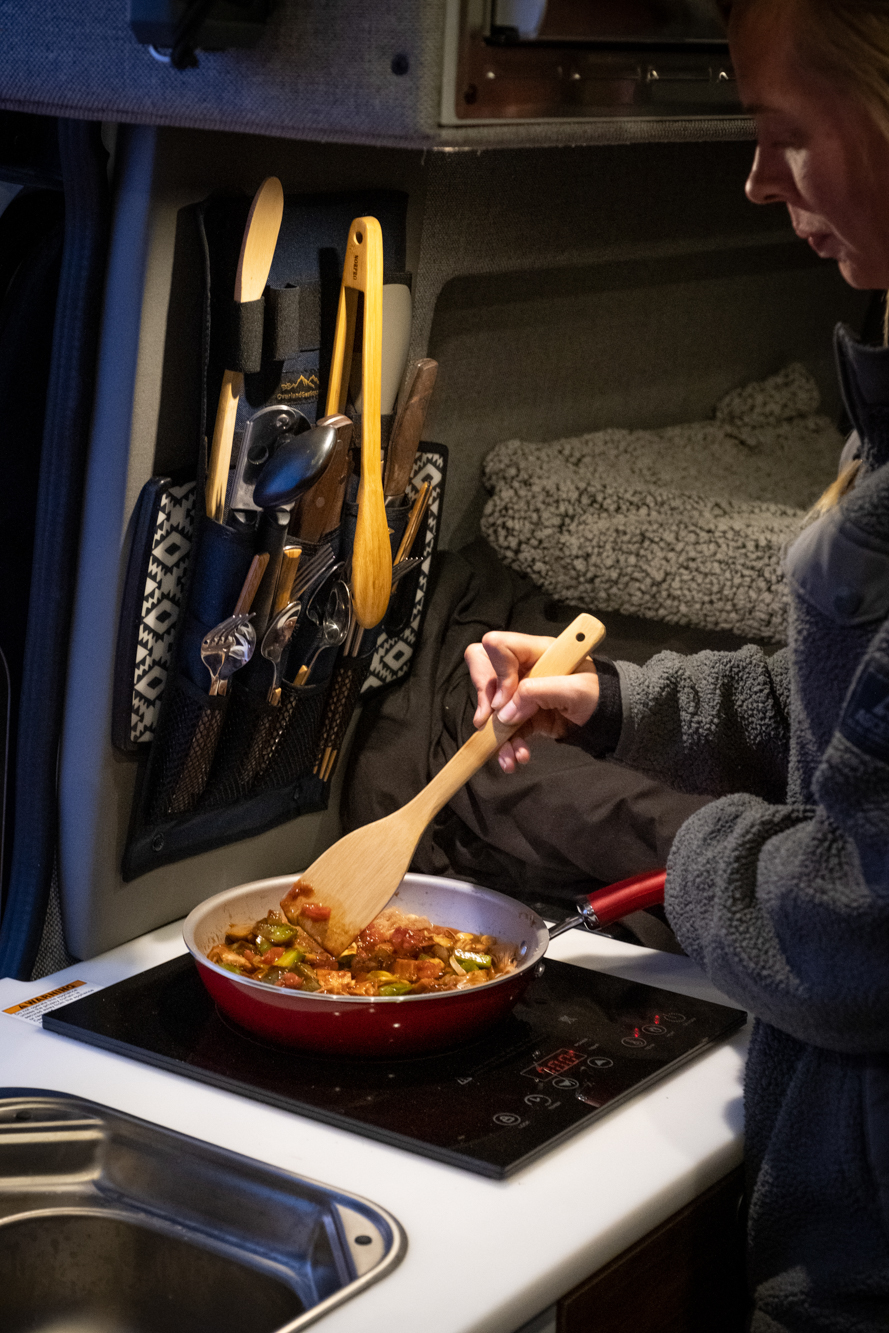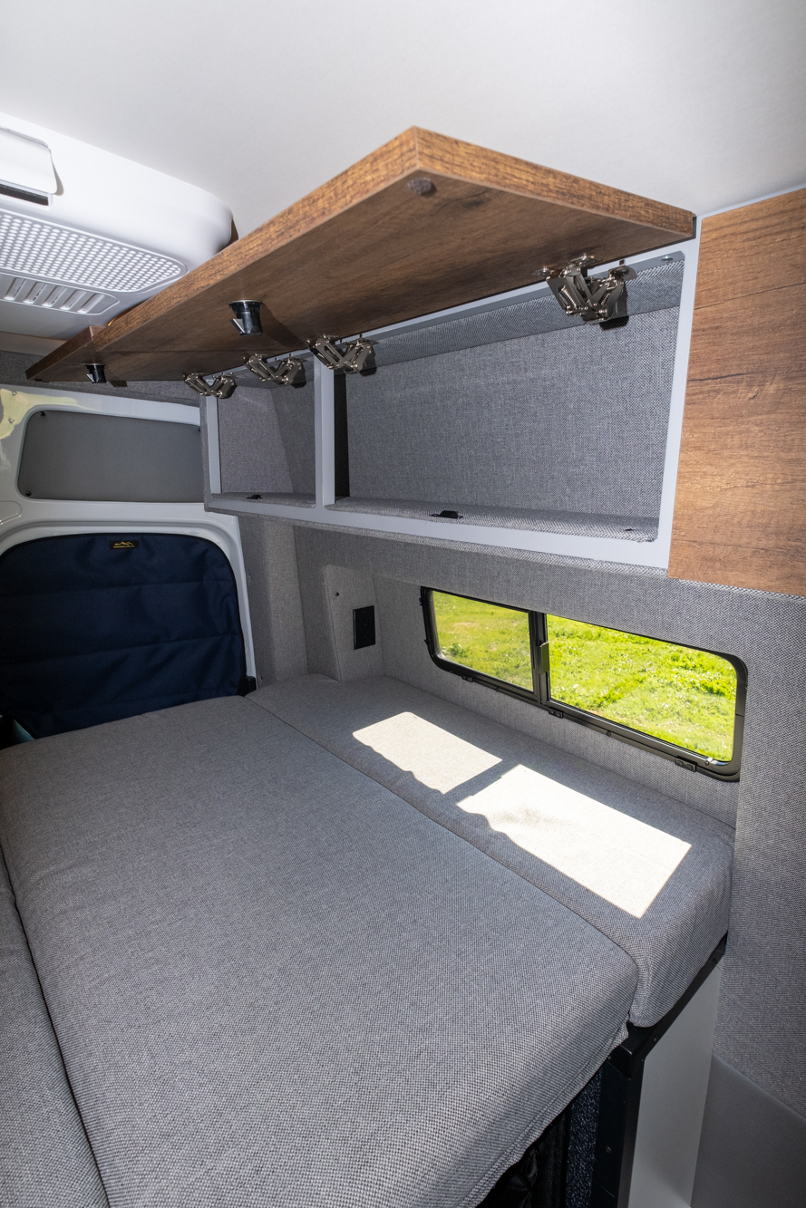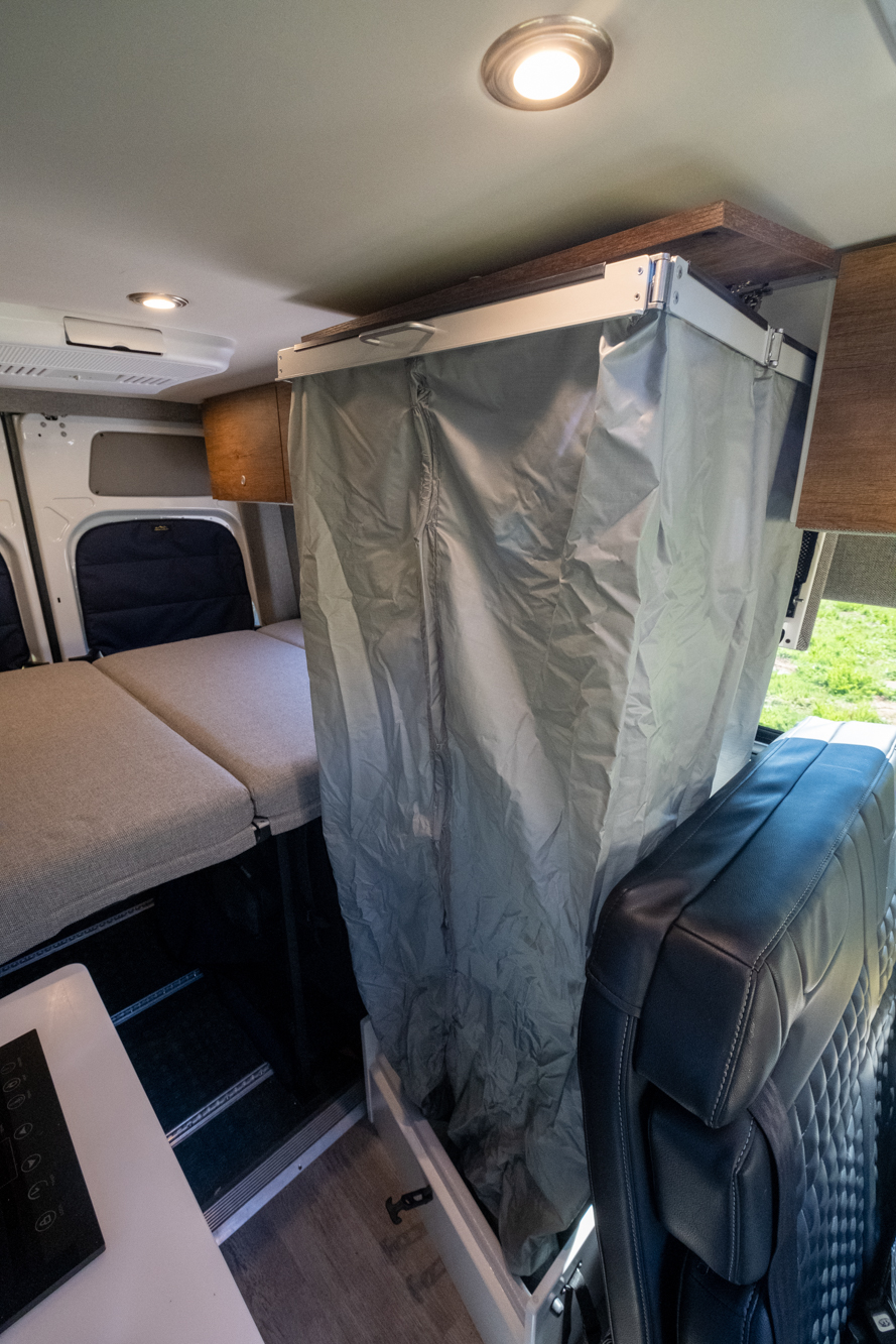 Now, if this was our own van, I am sure we would have found more creative ways to make use of the space: smaller pots and pans, an additional cabinet under the bed, perhaps a rear food cabinet on the wall beneath the halo shower. There are plenty of options, so don’t fret if you think this is a deal-breaker for the Mode, because it’s not. Just know that if you are planning to go full time on the road, you’ll want to make a few additions or buy gear to fit the van before you set out.