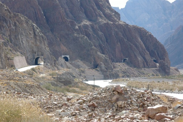 Having had a good night’s rest in a cabana set of early continuing in the direction of Chile and Aconcagua at an altitude of 6,960m, the highest mountain in the Americas and also the highest outside of the Himalayas. The road steadily climbed and when we reached the summit we pulled over to digest a majestic panorama that unfolded before our eyes. We sat and stared eventually stepping out into cold air, photographing this mind-boggling landscape. It was almost surreal and virtually indescribable but will endeavor to do so – here goes! Try to visualize huge, huge, yes extremely high mountains on the left and at the base a shelf on which a now inoperative railway line and derelict bridges, tunnels and building stand then slightly to the right a 30m sheer drop down to a mile wide bed of literally millions of boulders, cobbles and pebbles through which an aquamarine river wove its way along the valley. To the right a vertical step up another platform on which the road snakes along, crossing bridges, passing through tunnels clinging to the shelf at the foot of another range of sky-scraping mountains – this scenery all part and parcel of the Andes. And where you are standing large tankers, pantechnicons, tourist buses and numerous cars and believe me there are many thunder or whiz by all descending into the valley and as your eyes focus on this panorama most probably in excess of 30 – 50 kms funneling away from you and disappearing in the distant valleys, the vehicles, rail, river and road down there far, far away give an impression of being in miniature and you have to pinch yourself and say this can’t be true!!! It is quite awesome! As a matter of fact the terrain so resembled the highlands of Central Asia that director Jean-Jaques Annaud used it as a location for the epic film “Seven Years in Tibet” starring Brad Pitt.