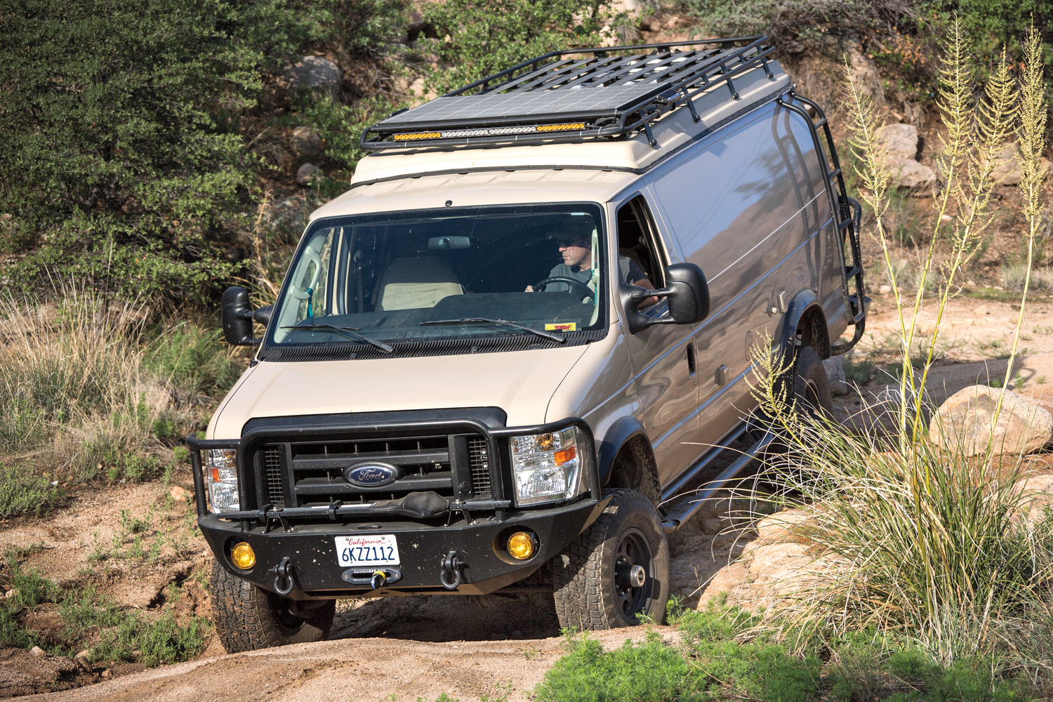 Sportsmobile’s well-executed Ford E-Series 4WD van conversion, which exhibits years of custom build experience and design evolution, was the logical choice. The most notable difference from other builds is that the van was received completely empty. When I drove away from Alan Feld’s impressive Sportsmobile West facility in Fresno, California, the van had a driver seat, one passenger seat (co-pilot position), their bombproof 4WD conversion and familiar penthouse top, aftermarket bumpers and side ladders—and nothing else.