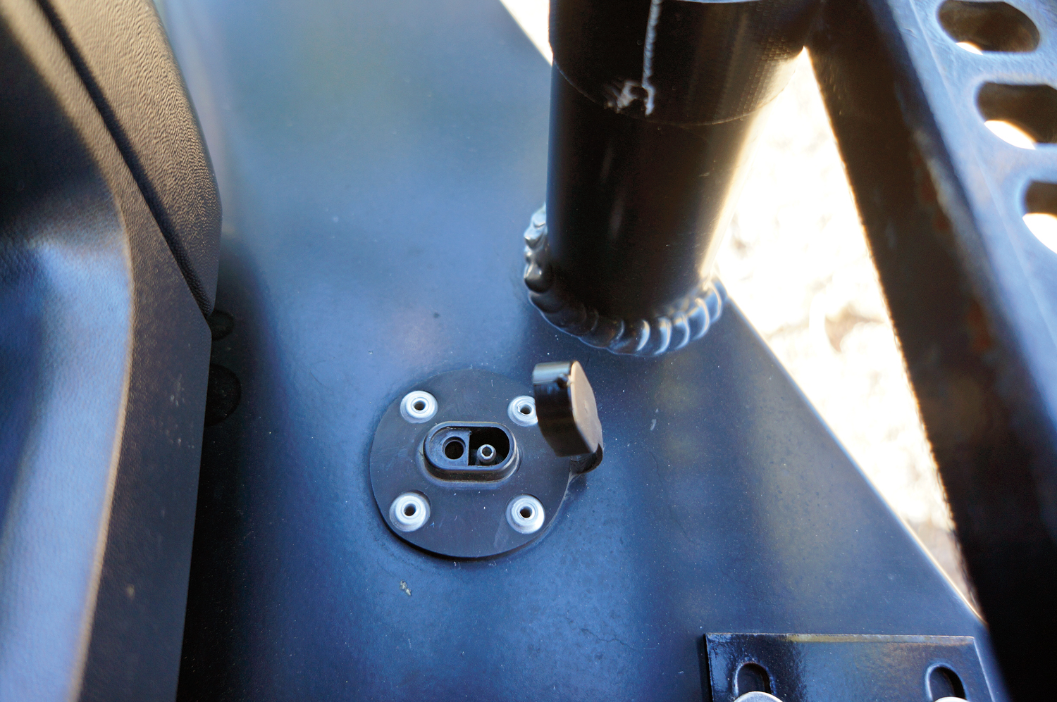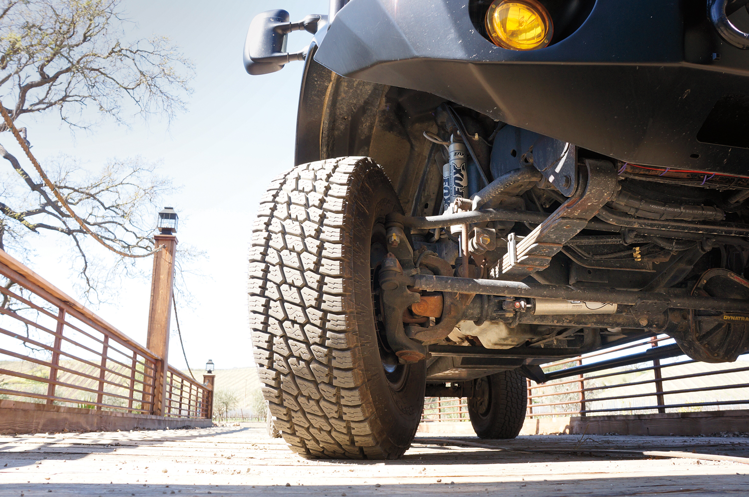 For some additional wiring and suspension work, I was directed to a local (California) shop called NTG Racing. There I found someone in surfer shorts, with acupuncture needles sticking out of his knee, wrenching on a shock. That someone was owner Joe Salas. Joe does truck repair and also builds specialized chase trucks for desert racing teams. With tan Scepter fuel cans everywhere and off-road racing legend Malcolm Smith’s Dodge truck in for repairs, I knew this was the right place. Somehow, we ended up at the nearby Fox factory and after a chat with their R&D crew, they agreed to set up four 2.0 remote reservoir shocks. The engineering team recommended beefing up the shock towers too, so Joe and his team made that happen in full go-fast glory. NTG also installed Fox’s 2.0 ATS proprietary steering stabilizer. These modifications changed the vehicle’s ride and handling considerably.