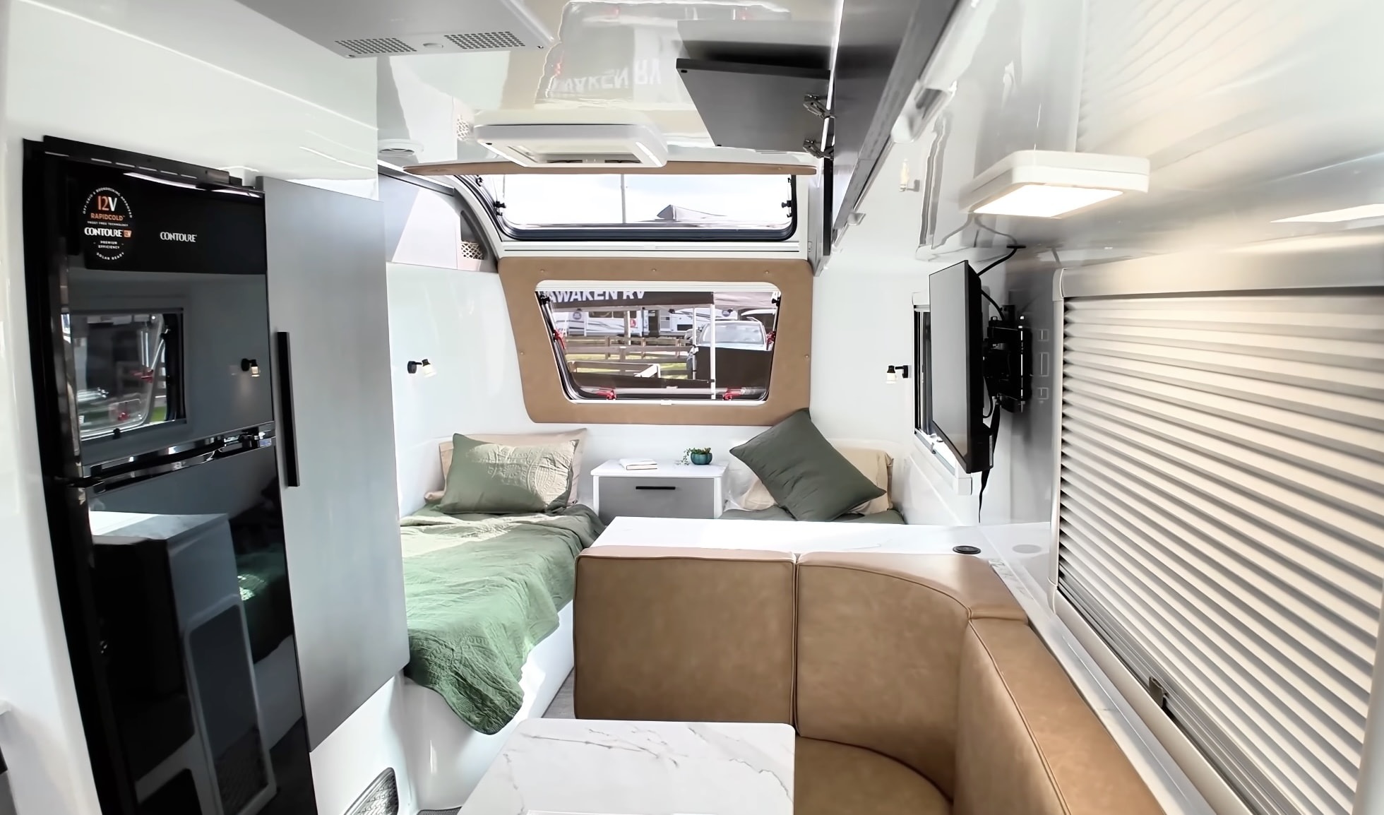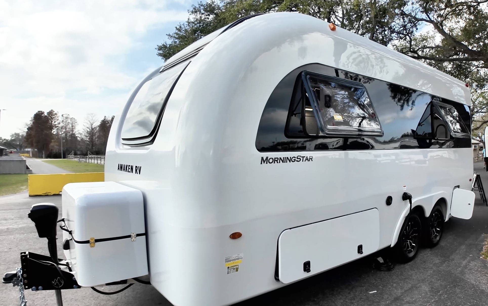 The MorningStar-i enters the market as a new contender in the fiberglass travel trailer segment, built by Awaken RV, a company founded in 2024 by industry veteran Scott Hubble. The model reflects the brand’s broader strategy of blending modern design, durable construction, and off-grid readiness into a trailer aimed at a wide range of buyers. The “i” in the name denotes the more rugged, go-further version of the MorningStar, distinguished by independent suspension and off-road tires compared with the standard model. This trailer is built for those who want to venture beyond pavement and set up camp where the landscape is still raw, and the road in is part of the adventure.