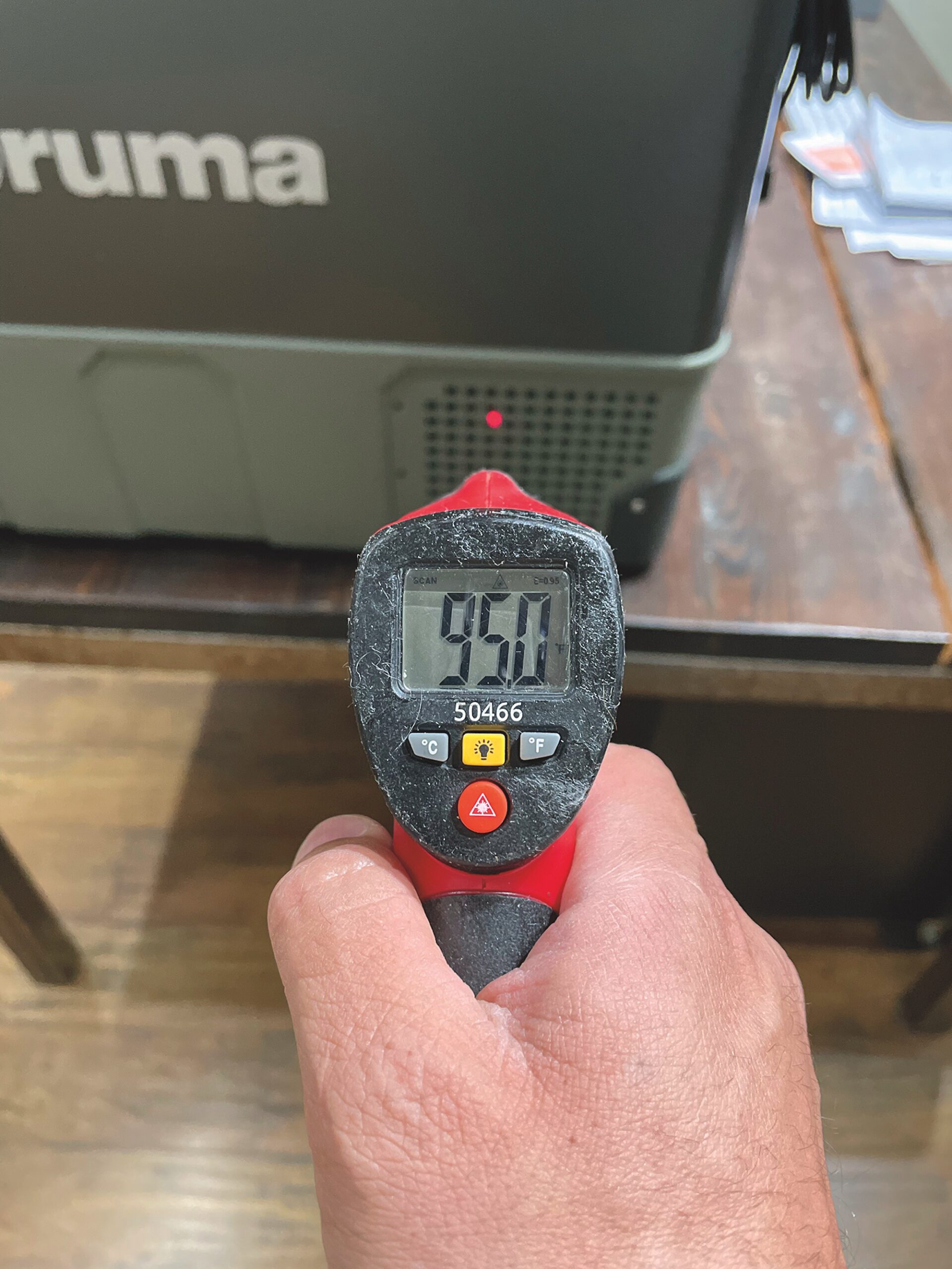 Our evaluation relied on good system design, repeatability, environmental controls, and vigilant oversight. The objective data was collected by our Operations Manager Garrett Mead, who coordinated with me on the testing methods and controls. Each test started with a digital scale weight before moving on to determining start-up amperage, cooldown amp hours and effectiveness (time to 46°F), steady-state amp hours (maintaining 46°F), and time to warm up (to 56°F).