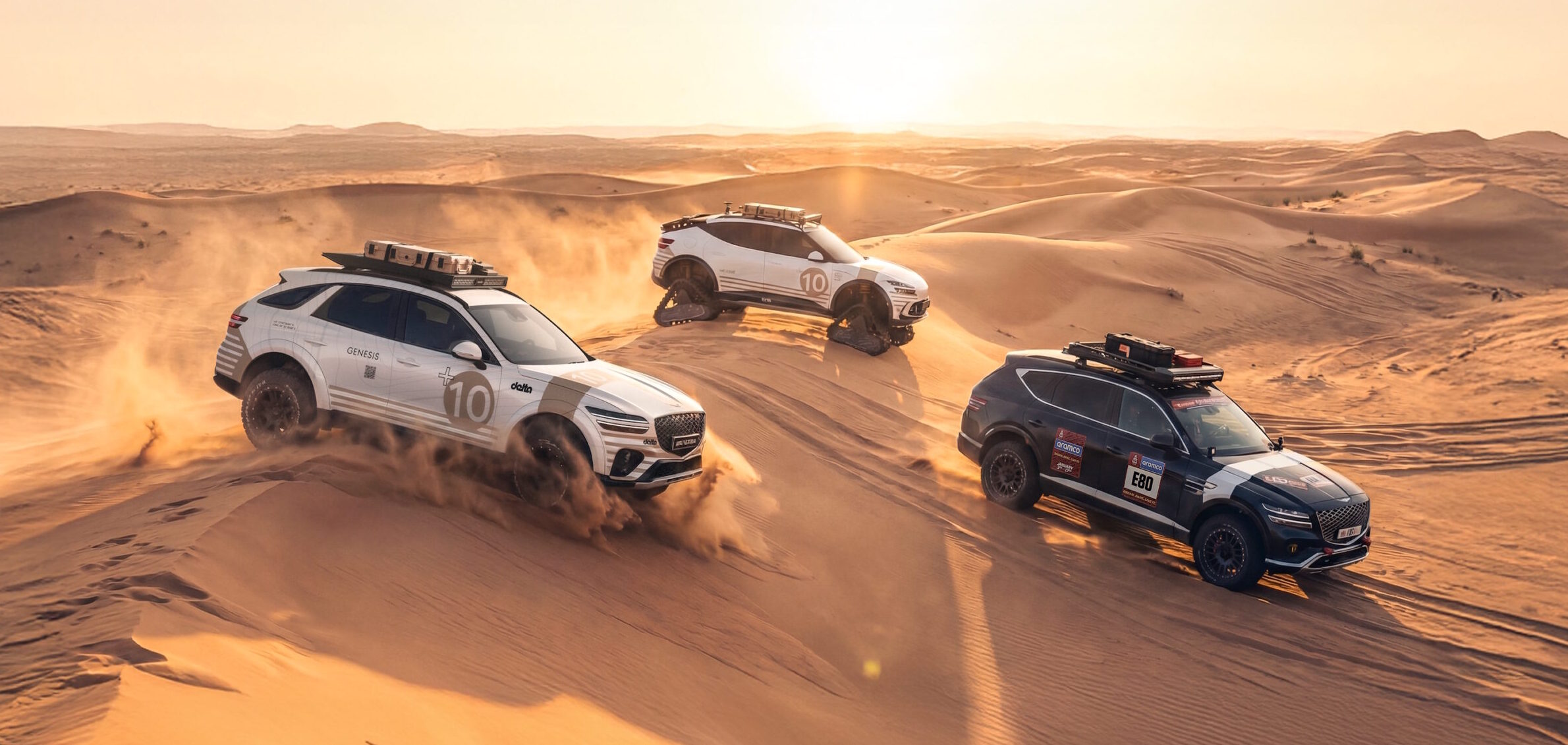 The chassis incorporates a tubular frame with a full roll cage, enhancing structural rigidity and safety when traversing difficult terrain. Complementing this sturdy architecture are 18-inch beadlock wheels wrapped in custom 40-inch off-road tires, suspension tuned for extreme ground clearance and generous approach and departure angles, and Brembo motorsport brakes designed to withstand the mechanical and thermal stresses of high-speed off-road driving. Together, these features suggest a vehicle engineered not merely to survive in sand, but to thrive in it.