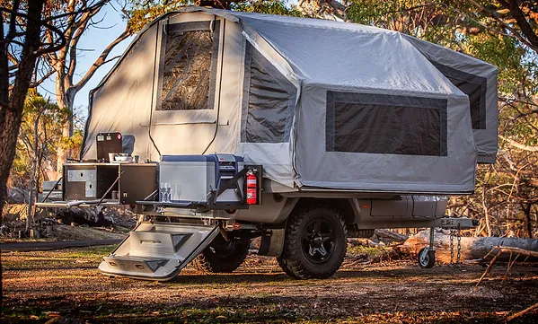 Essentially, the Kerfton is a hard-sided trailer sitting on a set of 285/75R16 tires which blooms into a large canvas tent with an external kitchen. When setting up camp, the Kerfton will only become quicker and easier with practice, with a sub-four-minute set-up time possible. The bedding stays neatly arranged when the camper is folded down, much like many rooftop tents, enhancing the overall ease of use.