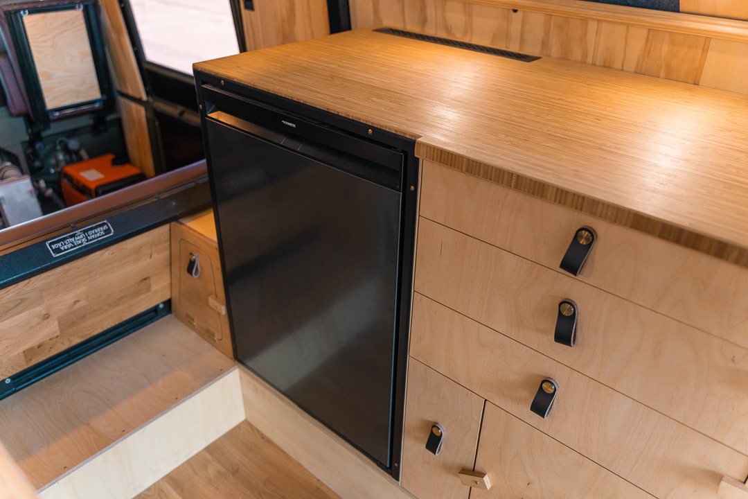 Measuring 1.9 meters wide by 2.55 meters high, the Volvo was the perfect size for a family of three. There was room for a large kitchen, and a pop-top conversion would create ample standing space and fit a spacious bed. The C304 is also known for its off-road capability. “We’re really big on not only overlanding, but finding amazing wild camping spots,” Chris says. “That’s what makes us tick. We really want to go where most overlanders wouldn’t risk their vehicle.” In addition, they hoped a fresh set of 37-inch Maxxis Trepador tires, along with new shocks and springs, would enhance the truck’s ability to crawl up and down nearly anything.
