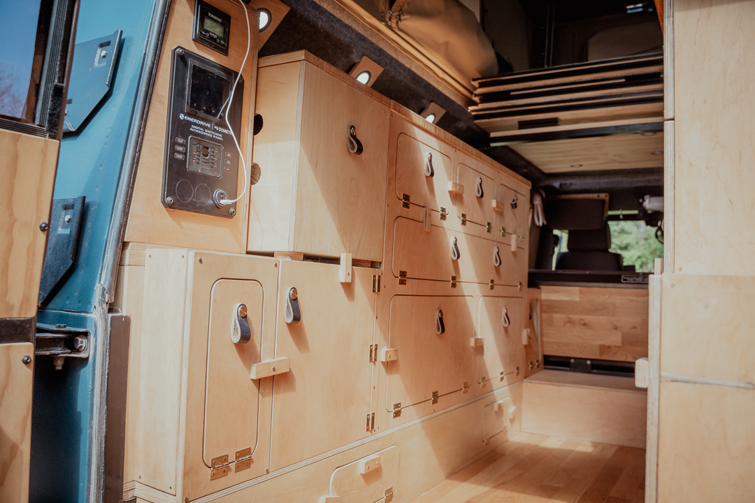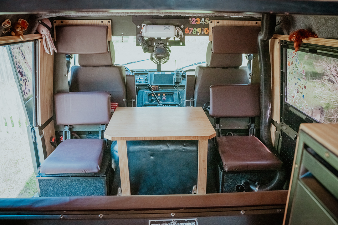 Curious, I asked Chris if he and Ange would ever choose a turnkey vehicle that required minimal renovation. “I couldn’t do it, to be honest,” he laughs. “Every time we do a build, at the end of it, he says, ‘Never again,’ because there have been so many challenges and hardships,” Ange adds. “And now, he’s starting to think of another potential build, and it’s going to be way less practical.” Chris smiles, giving nothing away.