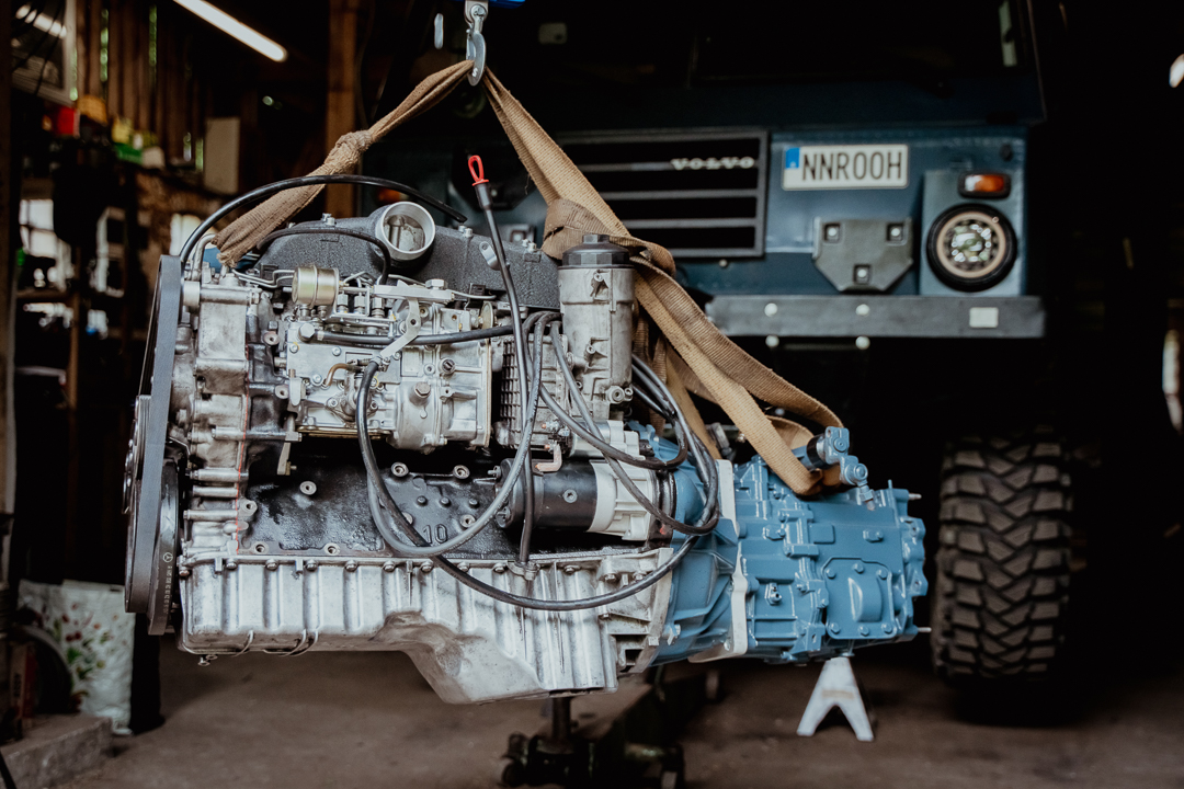 Then there was the state of the engine. The tired, 3-liter, straight-six petrol engine just wasn’t up to the task of a fully loaded 4.1-ton truck. “At the end of the day, that engine was designed for a very small Volvo [passenger car],” he says. “To get the military contract, I think Volvo was like, look, we’ve got a ton of these motors. We’re cranking them out. Let’s put that motor in this truck, and we’ll make it work.” A turbo-diesel engine swap would extend their range, nearly halve their fuel consumption, and at least triple the power and torque, transforming the driving experience completely.