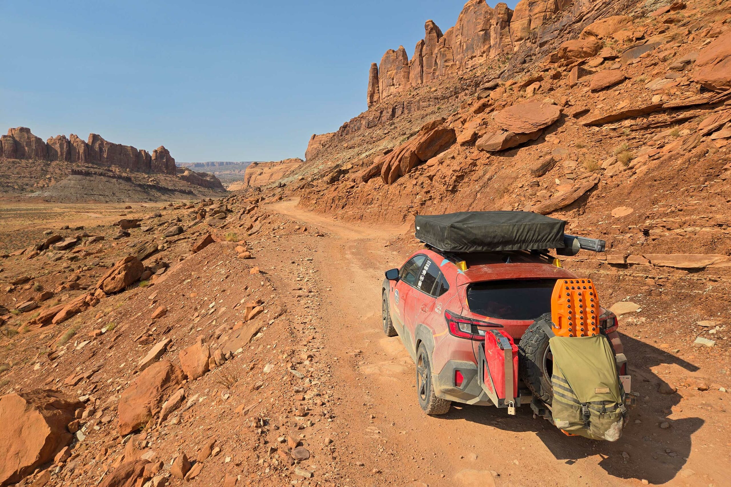 Strategically, we packed a month’s journey in (or on) the Subaru. We used every square inch to make it fit, and played Overland Tetris when gear needed to come out and be put back. The Bilsteins and King Springs were last-second upgrades, and even with the upgraded springs in the back, we still rode lower than desired (we’d go one level stiffer next time). Despite this, we rarely bottomed out or ran out of suspension travel, even off pavement.