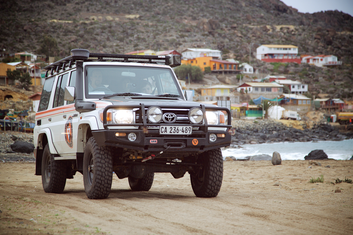 On the trail the Land Cruiser is a two-edged sword. It is supremely effective on gravel roads and moderate terrain; the motor and suspension work in concert to eat potholes and washboard for breakfast. For 99 percent of overland travel, the 70 Series has all of the capability one should need. However, this vehicle does have limitations in technical terrain, which is apparent by the narrow track width and almost nonexistent articulation. Though one might think it is impossible for a vehicle to flex less than a G-Wagen, the Land Cruiser comes close. Transfer case gearing is also too high and the clutch a bit undersized for the engine power. While we did not experience a failure, we did need to replace a clutch on one of the Expeditions 7 trucks at about 30,000 miles due to wear. The greatest trail frustration with the current 70 Series is the uneven track width of the front and rear axles. The rear is 1.5 inches narrower, causing the rear wheels and axle to constantly fight against the ruts created by their front counterparts, which compromises the Land Cruiser’s stability and predictability in mud and sand. This is a shocking oversight by Toyota, and given the quality and thoughtfulness of the rest of the platform, an inexcusable one. Despite the few complaints, the VDJ76 is a pleasure to operate in remote regions. The Land Cruiser facilitates adventure travel as a faithful and reliable companion. toyota.co.za/ranges/land-cruiser-76#models