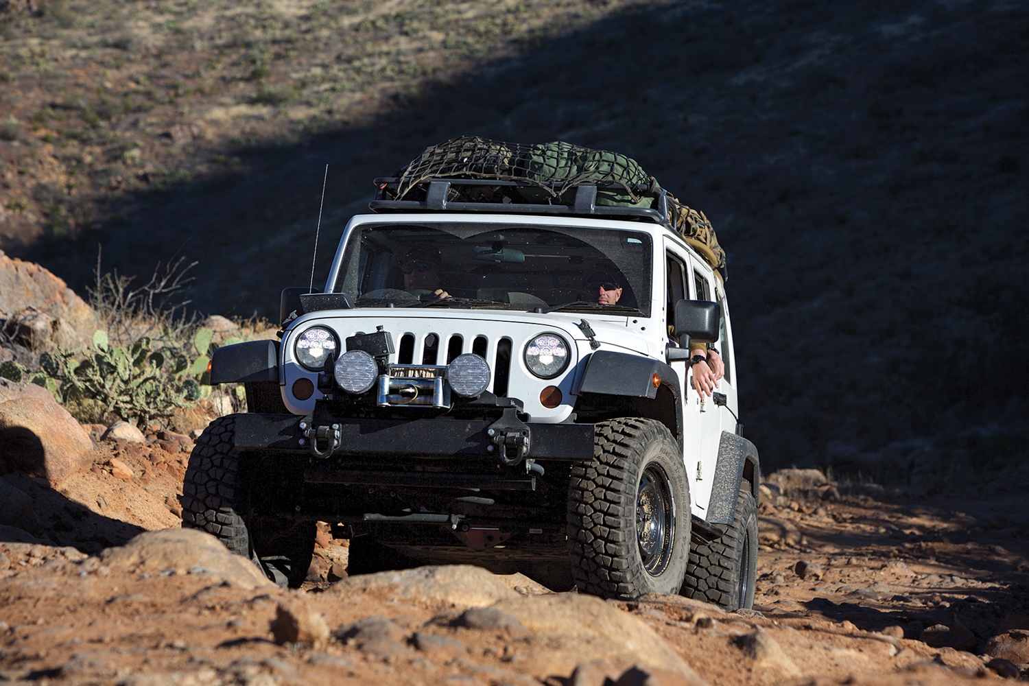 On the highway, the J8, which has a metric-ton capacity, feels no different than a Rubicon Wrangler. The only notable changes are the volume of torque available from the 2.8-liter diesel and the whine of the turbo as it spools to capacity. Do not let the small displacement fool you, this motor rips with nearly 200 horsepower and 339 lb-ft of torque, and when mated to its 4-speed automatic transmission, the combination is more than adequate for the most technical terrain and steepest grades. This configuration has also proven to be extremely reliable. During the three years we tested the vehicle we didn’t experience a single breakdown, even after it suffered the abuse of several Marine MARSOC units. However, we did have a couple of minor problems: a faulty ignition switch and one transmission fault (not mechanical) that was easily cleared. These issues caused the J8 to lag behind the Toyota and Nissan for overall reliability.