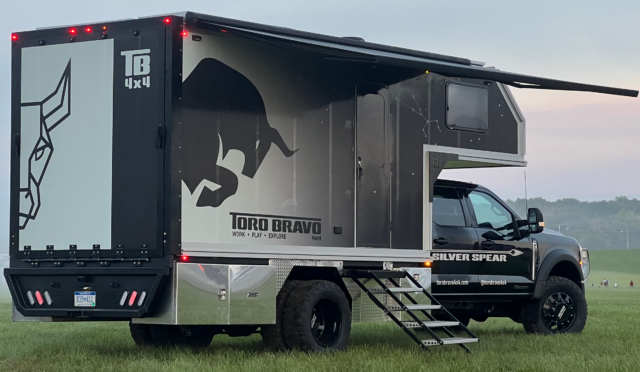 The highly qualified and experienced Toro Bravo 4×4 team (more about them later) recently introduced their first limited edition vehicle, the 2023 Silver Spear. This vehicle is not just a 4×4 work truck; it’s an RV and toy hauler rolled into one, designed to cater to the needs of doers and explorers alike.