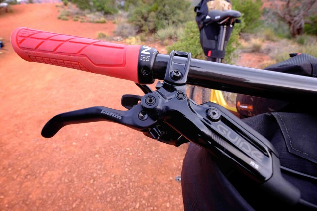 For 2016, the top tier Spearfish is equipped with a 1×11 SRAM XO1 drivetrain, a choice I particularly like. When riding rolling terrain, the one-ring setup simplifies the user interface which is a welcome benefit after several hours of continuous pedaling. The SRAM Roam 40 wheels are adequately stiff and accurate, exhibiting only minor flex when leaned into hard turns. The Guide RS brakes continue to restore my faith that the woes of Avid stoppers are well behind us, and have great modulation and power. I do foresee a swap to a larger 180mm rotor in my near future.