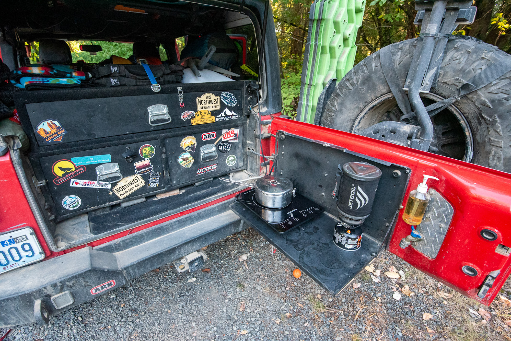 “We are simple (read: lazy) cooks, so much of the cooking involves boiling water. For this, we have a Jetboil Sumo. We also have a Gastrorag 1300-watt induction cooktop that we use when cooking a serious meal, though it rarely comes out.