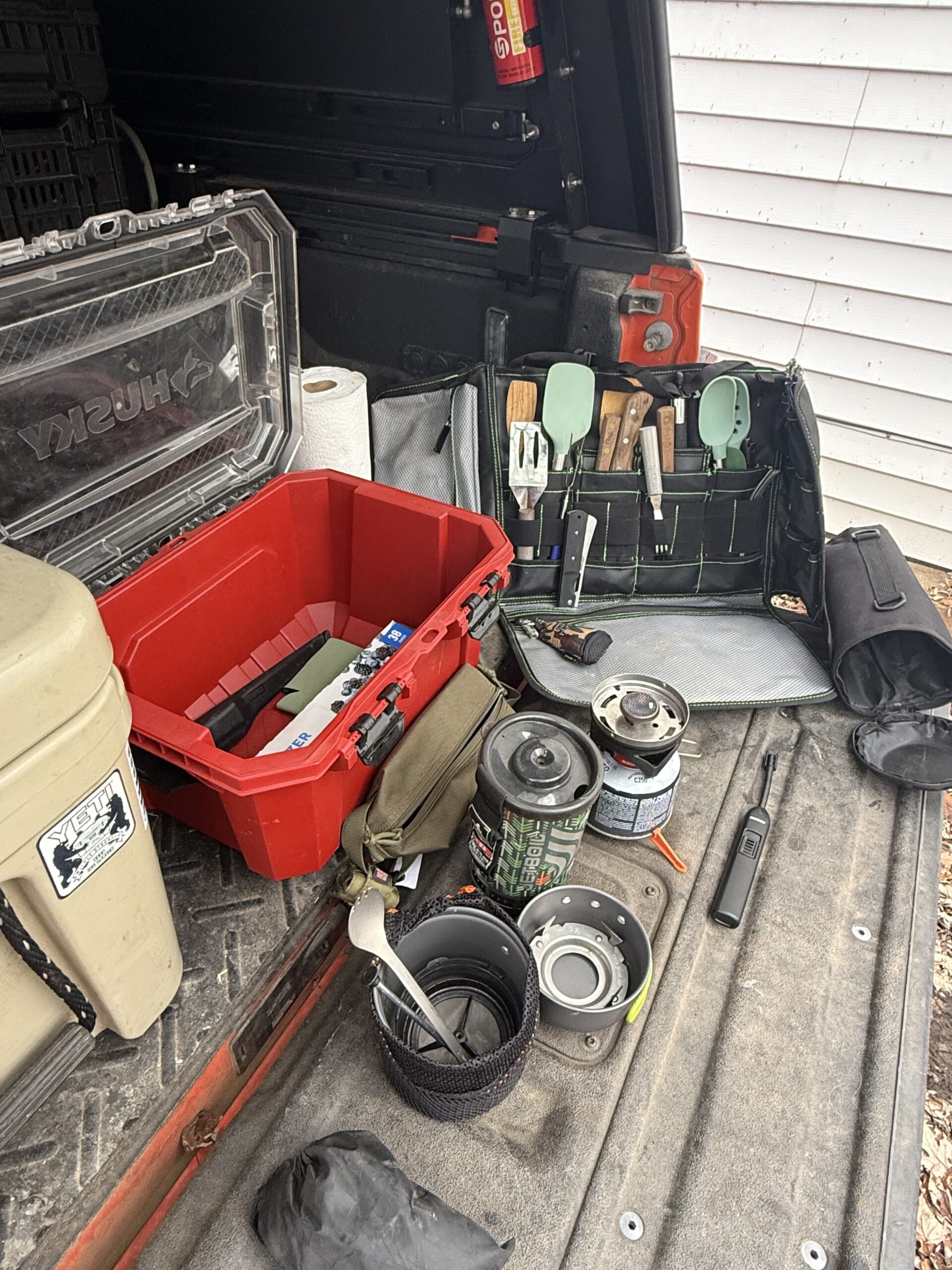 As an example, let’s consider keeping a rudimentary cook and wash setup ready to go in your vehicle. You don’t have to pack the kitchen sink, but a small kit organized into a tote or basin doesn’t weigh much or take up much space and can help you in a multitude of situations.